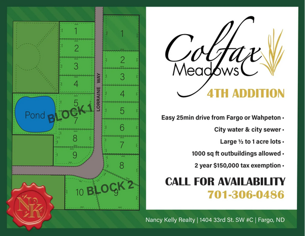 Colfax is a growing community located conveniently off I-29 between Fargo and Wahpeton. This small town is ideal for those who want the simplicity of country living yet desire to live in a neighborhood with amenities.