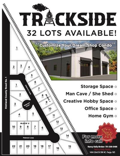 Introducing Trackside at Colfax Meadows, a premier luxury shop condo development in Colfax, North Dakota. This exclusive community features 32 prime lots, perfect for creating the space you've always dreamed of.